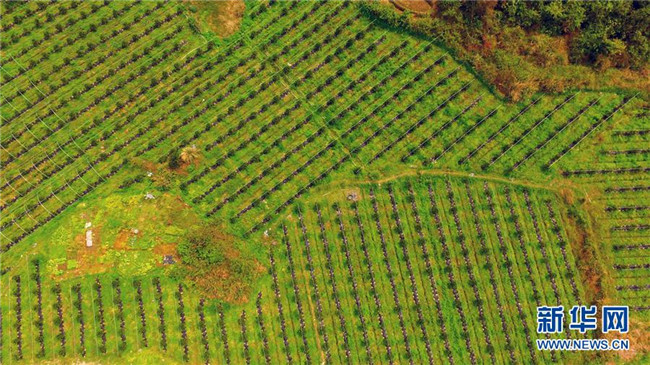 這是廣西融安縣大良鎮(zhèn)古蘭村古蘭屯金桔種植基地(3月21日無人機(jī)拍攝)。  新華社記者 黃孝邦 攝