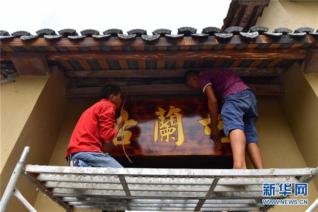 在廣西融安縣大良鎮(zhèn)古蘭村古蘭屯,村民在修繕古民居(8月18日攝)。  新華社記者 黃孝邦 攝