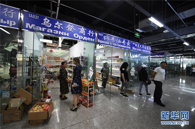 8月15日,顧客在巴克圖中哈邊民互市絲路文化商品城購物。