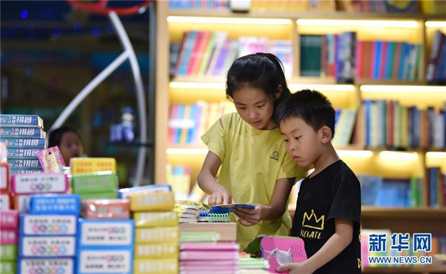 暑假期間,河北省定州市新華書店舉辦“樂享圖書嘉年華”暑期系列活動,通過舉辦圖書推介、親子閱讀、讀書感言征集等活動,豐富孩子們的假期生活。 新華社記者 朱旭東 攝