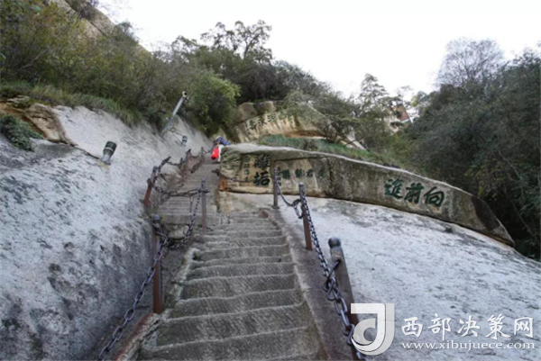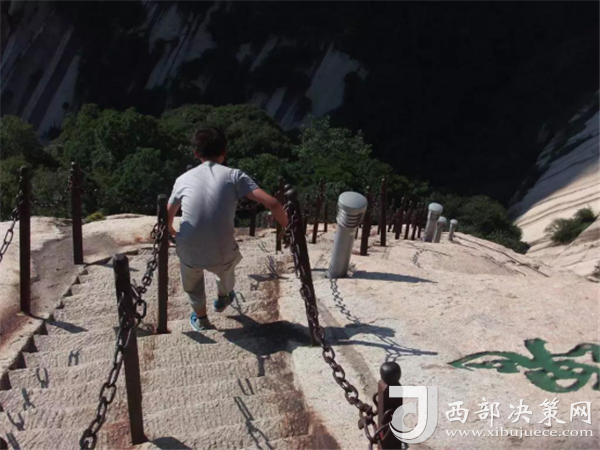 千百年前,陡峭如削的華山,艱險異常,難以登攀,只能“望山興嘆”“遠(yuǎn)而望之”。后來人們循猿徑,依山就勢,巧妙地利用天設(shè)地造的石隙嶺脊,開鑿出了登山道路,始有天下奇觀“自古華山一條路”。