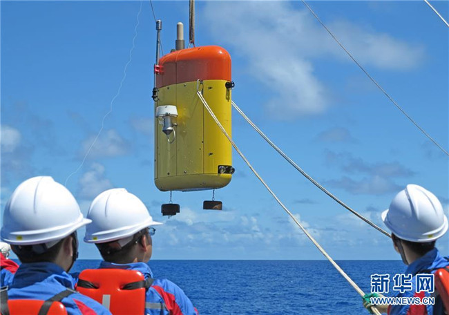 2016年7月1日,在馬里亞納海溝附近海域,“海斗”準(zhǔn)備下潛進(jìn)行科學(xué)考察。我國自主研制的“海斗”號無人潛水器在首次綜合性萬米深淵科考中成功進(jìn)行了一次八千米級、兩次九千米級和兩次萬米級下潛應(yīng)用,最大潛深達(dá)10767米,創(chuàng)造了我國無人潛水器的最大下潛及作業(yè)深度紀(jì)錄,使我國成為繼日、美兩國之后第三個(gè)擁有研制萬米級無人潛水器能力的國家。 新華社發(fā)