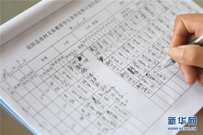 9月5日,十八洞小學(xué)老師在記錄學(xué)生每日食譜。新華社記者 陳澤國 攝