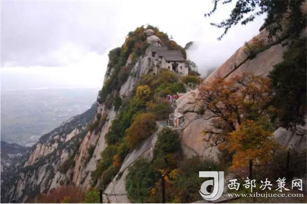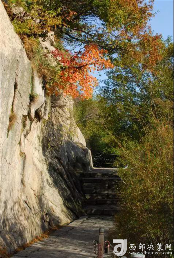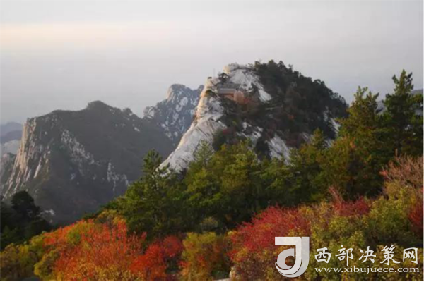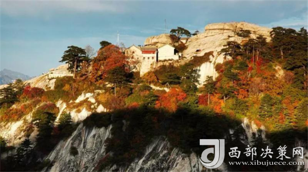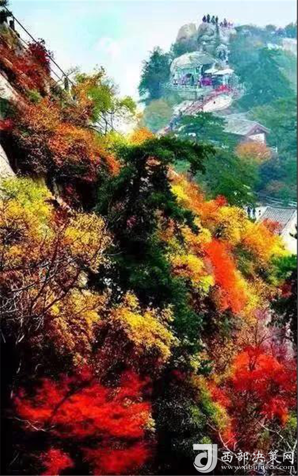 秋天的華山,溫度適中,紅葉滿(mǎn)山,山崖為底,松檜為墨,是休閑旅游的最佳季節(jié)。