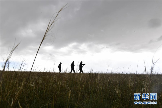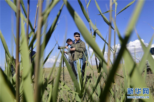 9月24日,青海湖國(guó)家級(jí)自然保護(hù)區(qū)管理局的巡湖觀測(cè)人員屈永強(qiáng)(右)、王延明在布哈河河口進(jìn)行觀測(cè)。