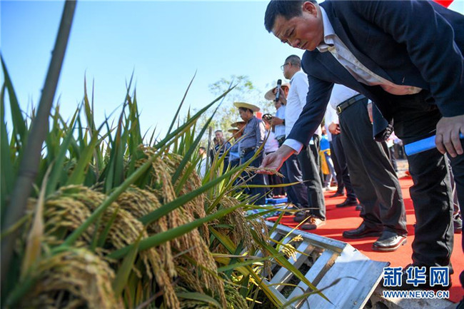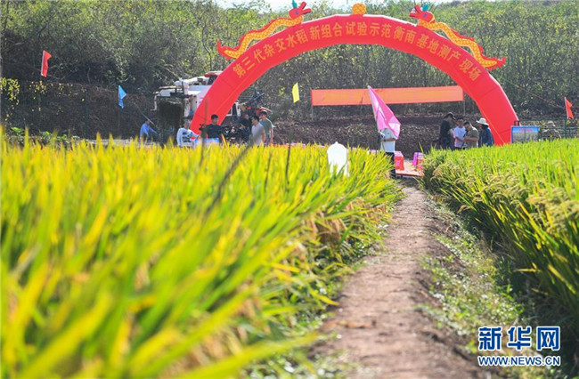 這是第三代雜交水稻新組合試驗(yàn)示范衡南基地測產(chǎn)現(xiàn)場(10月21日攝)。 新華社記者 陳澤國 攝