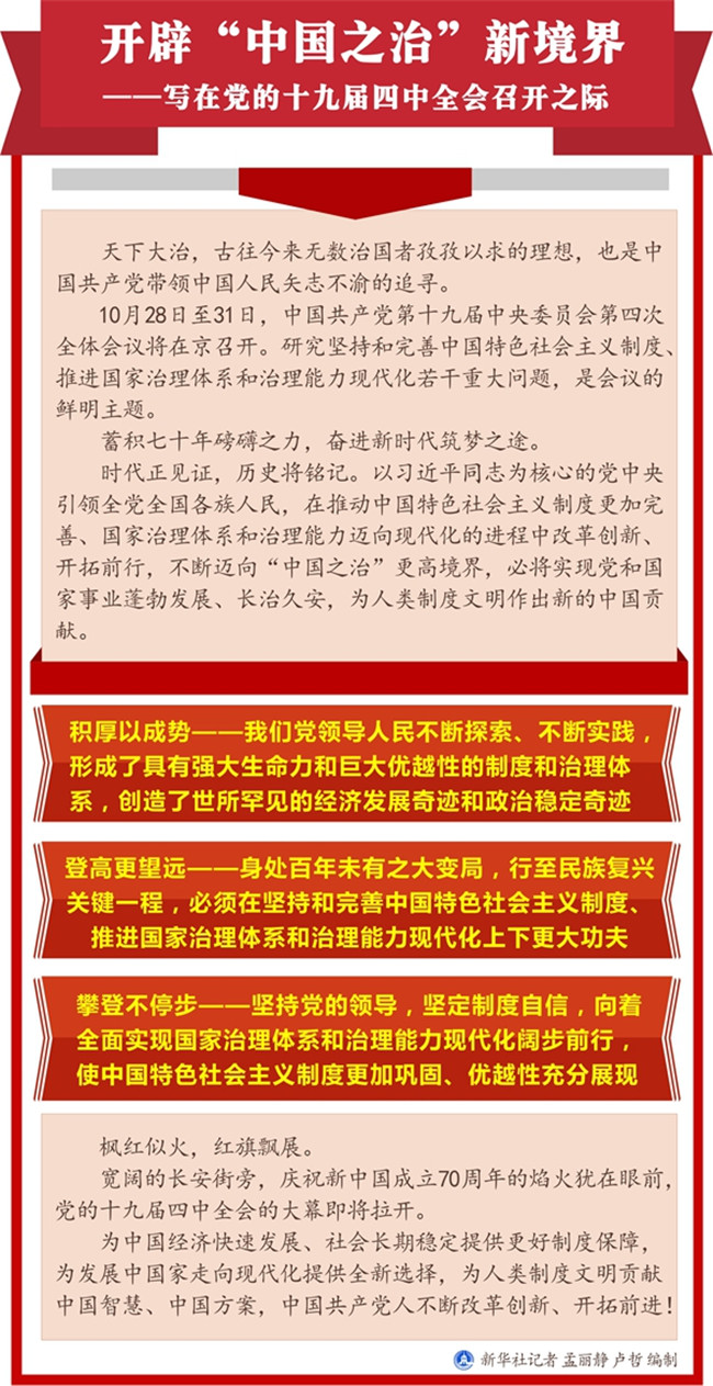 開辟"中國之治"新境界——寫在黨的十九屆四中全會召開之際