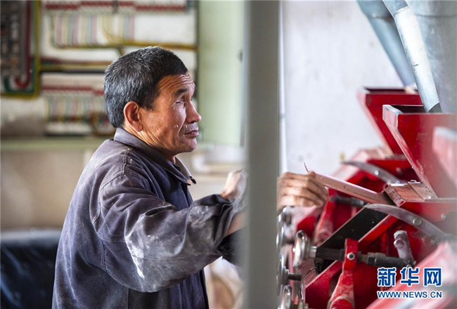 馬騰俊在操控電動(dòng)磨面機(jī)(10月25日攝)新華社發(fā)(楊植森 攝)
