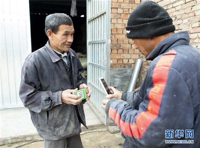 馬騰?。ㄗ螅┱谟枚S碼收取磨面的加工費(fèi)(10月25日攝)。 新華社發(fā)(楊植森 攝)