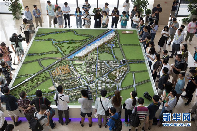 在上海臨港松江科技城沙盤前,參觀者聽取建設(shè)規(guī)劃(8月13日攝)。 G60科創(chuàng)走廊是利用長三角區(qū)位優(yōu)勢、良好的產(chǎn)業(yè)基礎(chǔ)和高??蒲袡C(jī)構(gòu)集中等特點(diǎn)打造的區(qū)域協(xié)同創(chuàng)新發(fā)展的重要平臺,將成為長三角更高質(zhì)量一體化發(fā)展的重要引擎。新華社記者 金立旺 攝