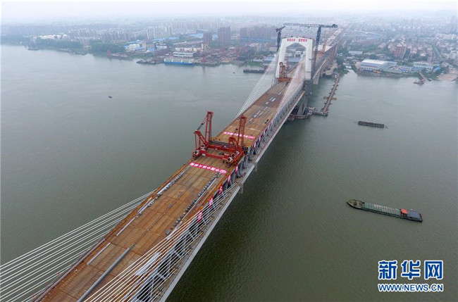 這是合龍后的商合杭鐵路蕪湖長江公鐵大橋(4月26日無人機(jī)拍攝)。新華社記者 張端 攝