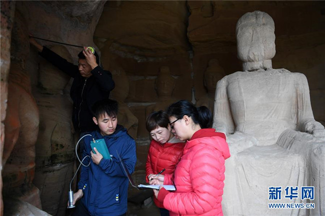 位于甘肅省慶陽市的北石窟寺始建于北魏永平二年(公元509年),經(jīng)歷代不斷擴(kuò)建形成一處窟龕密集的石窟群,現(xiàn)存大小窟龕308個(gè),石窟造像2000多身,在我國佛教石窟藝術(shù)中占有重要地位。近年來,為應(yīng)對(duì)石窟的風(fēng)化、落砂等情況,文物保護(hù)工作人員對(duì)石窟周邊環(huán)境和山體狀況進(jìn)行定期檢測,以制定合適方案對(duì)北石窟寺加以修復(fù)保護(hù)。