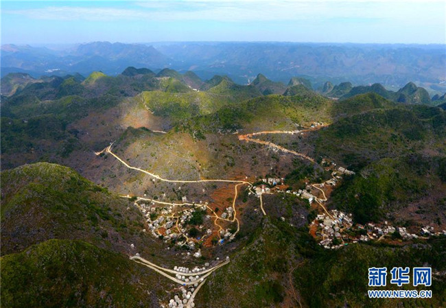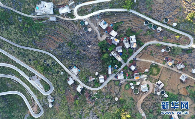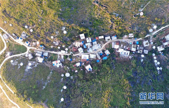 廣西大化瑤族自治縣百馬鄉(xiāng)百馬村群眾的家庭水柜分布在房前屋后(11月14日無人機(jī)拍攝)。  新華社記者 黃孝邦 攝
