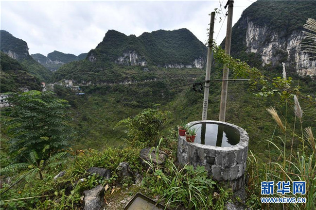 在廣西大化瑤族自治縣七百弄鄉(xiāng)古竹村,村民在懸崖邊修建的微型水柜(11月13日攝)。 新華社記者 黃孝邦 攝