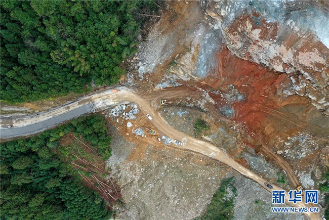 這是位于廣西融水苗族自治縣四榮鄉(xiāng)境內(nèi)在建的羅融二級(jí)公路(11月19日無人機(jī)拍攝)。 新華社記者 黃孝邦 攝