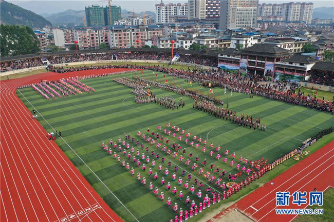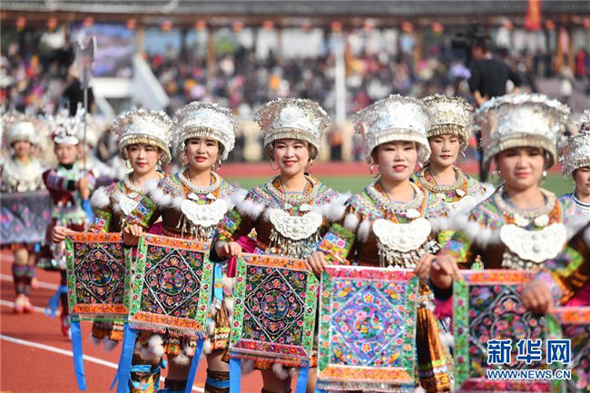 當(dāng)日,廣西融水苗族自治縣第十九屆蘆笙斗馬節(jié)開(kāi)幕。本屆蘆笙斗馬節(jié)的內(nèi)容包括少數(shù)民族非遺文化展演、蘆笙舞比賽、扶貧產(chǎn)品展、美食節(jié)大賽、水上表演等民族特色活動(dòng)。 新華社記者 黃孝邦 攝
