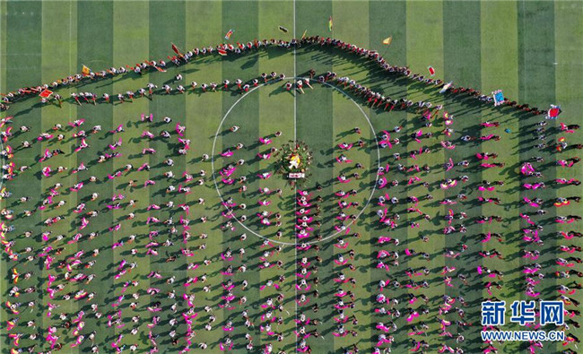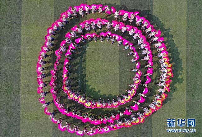 11月23日,當(dāng)?shù)厝罕娫谔J笙斗馬節(jié)開(kāi)幕式上表演民族歌舞(無(wú)人機(jī)拍攝)。