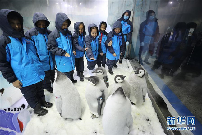 當(dāng)日,來(lái)自廣州和珠海的小學(xué)生代表來(lái)到珠海長(zhǎng)隆海洋王國(guó),參加企鵝關(guān)愛(ài)活動(dòng),零距離接觸今年新生的帝企鵝。本次活動(dòng)旨在加強(qiáng)極地科普教育,提高小學(xué)生保護(hù)動(dòng)物和呵護(hù)極地的意識(shí)。 新華社記者 盧燁 攝