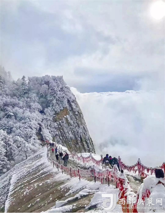 華山在12月至次年3月全山飄雪,而2月前為最旺雪期,門票為全年最優(yōu)惠價格,更抵擋不住登山愛好者前來賞雪的熱情。
