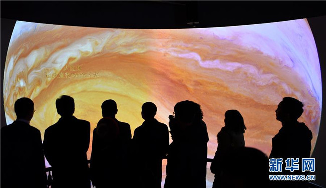 12月14日,觀眾參觀藏域星球天文科普體驗館。當日,藏域星球天文科普體驗館在西藏拉薩開館試運營,這是西藏第一家天文科普體驗館。據介紹,此館以感知宇宙、認知宇宙、探索宇宙為主題,以參觀者的第一感官體驗為設計導向,利用互動投影、懸浮投影、物體跟蹤、人體捕捉、體感互動、VR等高科技手段展示藏地的神秘,揭示宇宙的奧秘。新華社記者李鑫攝