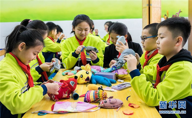 當(dāng)日,內(nèi)蒙古呼和浩特市玉泉區(qū)通順街小學(xué)“巧手社團(tuán)”的學(xué)生在老師的指導(dǎo)下,利用身邊的布頭、絲綿等廢棄物,制作生肖鼠布藝作品,表達(dá)對(duì)新年的美好祝愿。近年來,玉泉區(qū)教育部門大力推動(dòng)“傳統(tǒng)文化進(jìn)校園”活動(dòng),在當(dāng)?shù)貙W(xué)校里開設(shè)剪紙、面塑、戲曲等民間藝術(shù)課程,讓學(xué)生感受傳統(tǒng)文化的魅力。 新華網(wǎng) 發(fā)(丁根厚 攝)