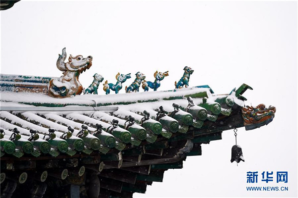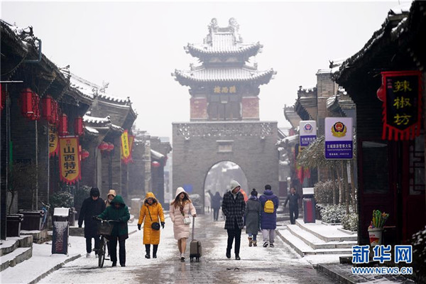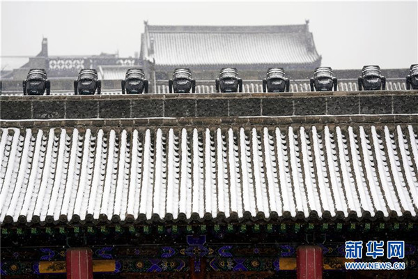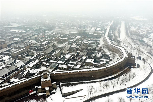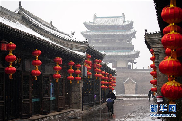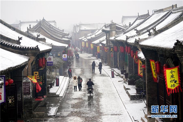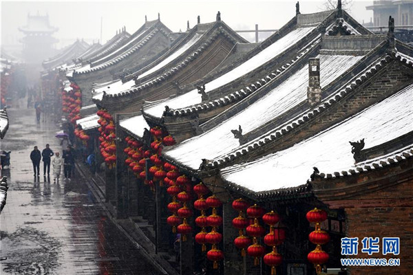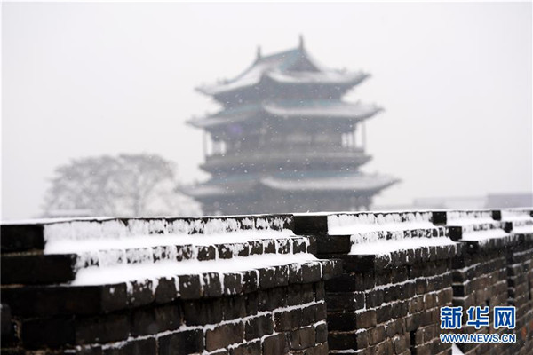 當日,山西省平遙縣迎來降雪,雪中的平遙古城銀裝素裹,美景如畫。平遙古城是目前中國保存最完整的古代縣級城池之一,1997年被列入世界文化遺產(chǎn)名錄。新華社記者詹彥攝