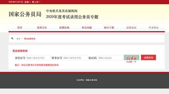 今晚,中央機關(guān)及其直屬機構(gòu)2020年度公務(wù)員招考公共科目筆試成績正式公布??忌稍谥醒霗C關(guān)及其直屬機構(gòu)2020年度考試錄用公務(wù)員專題網(wǎng)站查詢筆試成績和最低合格分數(shù)線。