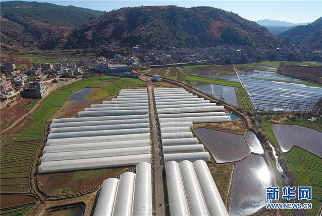 這是1月9日拍攝的云南省富民縣散旦鎮(zhèn)漢營村草莓種植基地(無人機照片)。新華社記者楊宗友攝