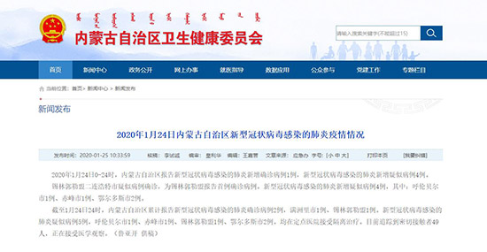 內(nèi)蒙古新增1例新型冠狀病毒感染肺炎確診病例 疑似病例新增4例