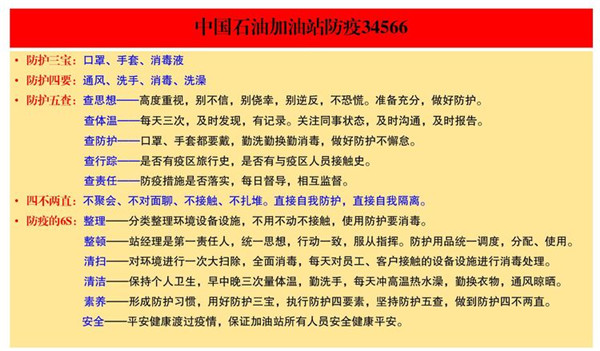 張應(yīng)來(lái)對(duì)近期工作提出四點(diǎn)要求:一是各加油站經(jīng)理必須不折不扣的執(zhí)行新型冠狀病毒感染肺炎防控工作,保護(hù)自我、保護(hù)同事、保護(hù)家人。二是合理排班,科學(xué)排班,一類(lèi)站12小時(shí)一換班;二類(lèi)站24小時(shí)一換班;三類(lèi)站可以?xún)商旎蛘呷旄鶕?jù)加油站實(shí)際情況安排,盡可能減少人員流動(dòng)。三是要求員工上下班不得乘坐公共交通工具,選擇安全的上下班交通工具。四是認(rèn)真落實(shí)業(yè)務(wù)運(yùn)作中心通報(bào)要求內(nèi)容,不折不扣的做好執(zhí)行,認(rèn)真加以落實(shí)。