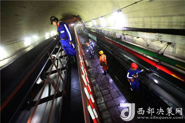 井下工人正在巡檢運(yùn)轉(zhuǎn)的皮帶