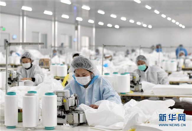 在仙桃,經(jīng)過批準的口罩、防護服生產(chǎn)企業(yè)加班加點,防護用品的產(chǎn)能不斷提升;