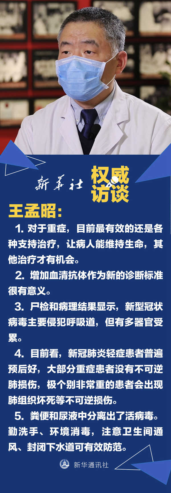 國(guó)家衛(wèi)健委近日發(fā)布《新型冠狀病毒肺炎診療方案(試行第七版)》。關(guān)于新版診療方案里加入的危重癥、重癥“預(yù)警指標(biāo)”能降低病亡率嗎?血清抗體檢測(cè)能解決核酸“假陰”問題嗎?糞便和尿液里的病毒怎么防控?針對(duì)這些問題,新華社記者專訪了北京協(xié)和醫(yī)院呼吸與重癥醫(yī)學(xué)科主任王孟昭,一起來了解一下吧。