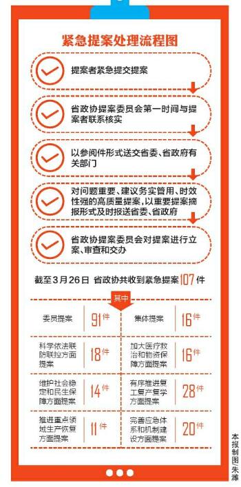 抗疫阻擊戰(zhàn)打響以來,省政協(xié)委員、省政協(xié)各參加單位和各專門委員會已提交緊急提案107件——