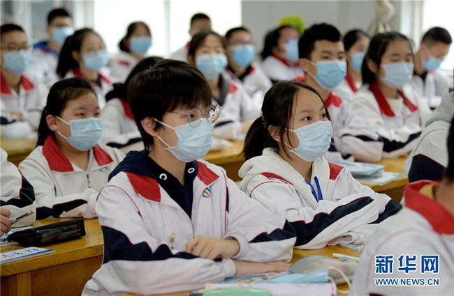 當日,陜西初三年級35.46萬學生、中等職業(yè)學校畢業(yè)年級5.83萬學生返校復(fù)課。 新華社記者 劉瀟 攝