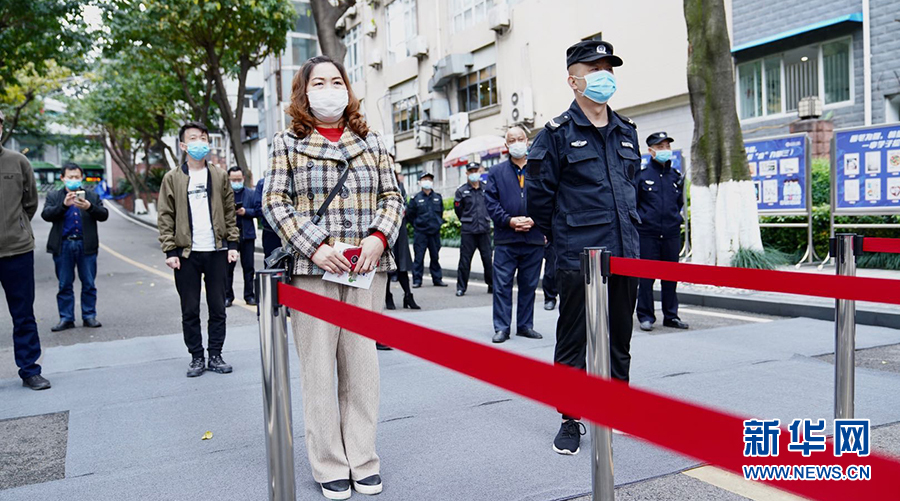 在重慶市第一中學(xué),學(xué)生返校時須由值班人員引導(dǎo)指揮,在校門外有序排隊(duì),相互間保持一米的距離,并從專用通道依次有序進(jìn)入。圖為學(xué)校老師演習(xí)進(jìn)校場景。新華網(wǎng)發(fā)