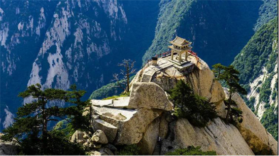 華山之上,奇峰峻嶺、幽谷險道、靈泉古洞、趣石秀木、祠廟宮觀,自然景觀與人文景觀結(jié)合地渾然一體、卓然天成。東、西、南、北、中,五峰卓絕,各具特色。