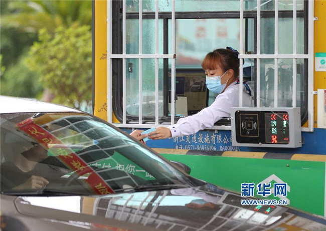 5月6日,貴州省銅仁市玉屏侗族自治縣滬昆高速玉屏收費站的收費員在收取過往車輛過路費。 交通運輸部4月28日發(fā)布關(guān)于恢復(fù)收費公路收費的公告,經(jīng)國務(wù)院同意,自2020年5月6日零時起,經(jīng)依法批準(zhǔn)的收費公路恢復(fù)收費(含收費橋梁和隧道)。 新華社發(fā)(胡攀學(xué) 攝)