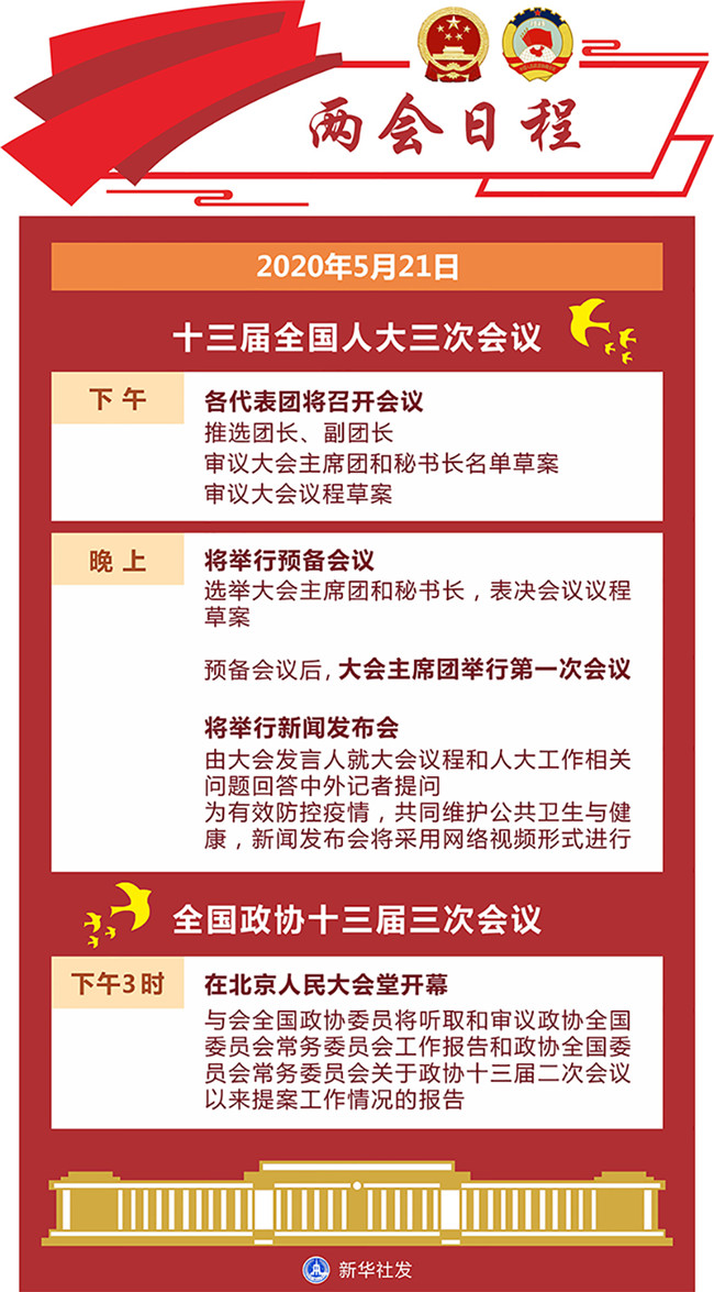 原標(biāo)題:5月21日:全國(guó)政協(xié)十三屆三次會(huì)議下午3時(shí)開幕 十三屆全國(guó)人大三次會(huì)議舉行預(yù)備會(huì)議