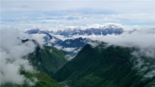 這是5月27日拍攝的雨后云霧繚繞的岷山(無人機(jī)照片)。
