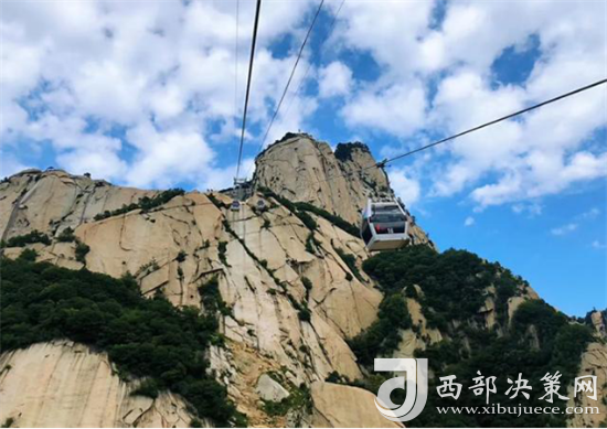 華山西線索道是迄今為止世界上第一條采取崖壁開(kāi)鑿硐室站房、起伏式走向、設(shè)中間站的單線循環(huán)脫掛式索道,索道設(shè)備自法國(guó)引進(jìn),采取全程數(shù)字自動(dòng)化控制系統(tǒng),達(dá)世界一流水平。索道下站設(shè)在甕峪內(nèi)東溝口,中間站設(shè)在仙峪白雀寺,上站設(shè)在華山西峰巨靈足南側(cè)下絕壁洞室內(nèi)。索道線路斜長(zhǎng)4211米,相對(duì)高差894米,支架28個(gè),客運(yùn)吊廂84個(gè),吊廂間距為115米,每廂可乘8人,運(yùn)行速度最快6米/秒,單向運(yùn)量1500人/小時(shí)。