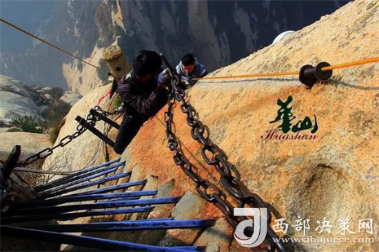 長空棧道位于華山南峰東側(cè)山腰,在約2160米垂直的崖壁上鑿洞、插楔、鋪板搭制而成的“長空棧道”,腳下便是萬丈深淵,勇敢的人如履平地,稍畏懼者便是膽戰(zhàn)心驚,屏氣挪步。