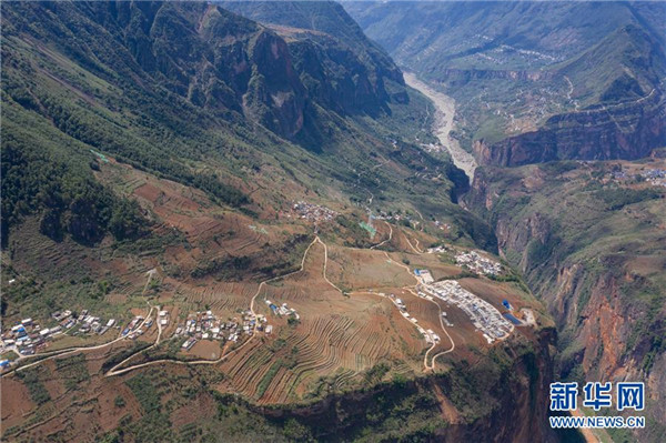 金陽(yáng)縣山江鄉(xiāng)老寨子村的通村公路,公路處于金沙江和西溪河峽谷懸崖絕壁邊(6月7日攝,無(wú)人機(jī)照片)。坐落在金沙江畔的四川省金陽(yáng)縣是國(guó)家級(jí)深度貧困縣,境內(nèi)群山連綿起伏,海拔落差大,眾多村寨處于高山或者高半山上,道路施工難度大。近年來(lái),當(dāng)?shù)卣畬⒔煌ㄗ鳛槊撠毠?jiān)的先導(dǎo)性工程,路越修越寬、越修越好,成為當(dāng)?shù)厝罕姷拿撠氈赂宦?。截?019年底,金陽(yáng)縣實(shí)現(xiàn)所有鄉(xiāng)鎮(zhèn)通油路、建制村通硬化路,鄉(xiāng)道里程達(dá)329.9公里,村道里程達(dá)866.8公里。新華社記者江宏景攝