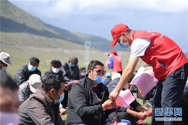 6月20日,新疆阿勒泰地區(qū)布爾津縣也格孜托別鄉(xiāng)克孜勒托蓋村村醫(yī)哈納提別克·沙旦在布爾津縣阿貢蓋提草原向參加該鄉(xiāng)牧業(yè)會議的牧民發(fā)放醫(yī)療宣傳資料。圍繞實(shí)現(xiàn)人人享有基本醫(yī)療衛(wèi)生服務(wù)目標(biāo),2016年起,新疆布爾津縣開展家庭醫(yī)生簽約服務(wù)工作。該縣組建家庭醫(yī)生簽約團(tuán)隊(duì)65個(gè),團(tuán)隊(duì)醫(yī)務(wù)人員233名,通過手機(jī)APP、基本公衛(wèi)系統(tǒng)與全縣建檔立卡貧困戶進(jìn)行電子化簽約,提升村醫(yī)隨訪的工作效率和質(zhì)量。截至目前,已完成簽約42936人,履約40043人。新華社記者沙達(dá)提攝
