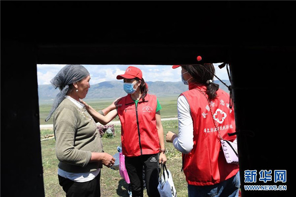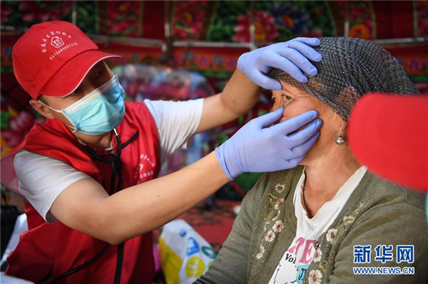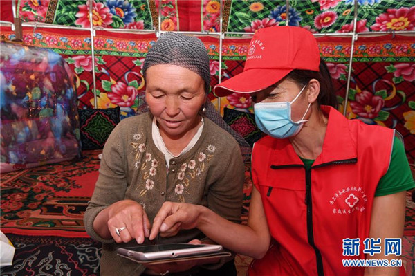 6月20日,新疆阿勒泰地區(qū)布爾津縣也格孜托別鄉(xiāng)克孜勒托蓋村村醫(yī)來到布爾津縣黑流灘草原給牧民巴合提古麗·塔拉甫汗檢查身體。圍繞實(shí)現(xiàn)人人享有基本醫(yī)療衛(wèi)生服務(wù)目標(biāo),2016年起,新疆布爾津縣開展家庭醫(yī)生簽約服務(wù)工作。該縣組建家庭醫(yī)生簽約團(tuán)隊(duì)65個(gè),團(tuán)隊(duì)醫(yī)務(wù)人員233名,通過手機(jī)APP、基本公衛(wèi)系統(tǒng)與全縣建檔立卡貧困戶進(jìn)行電子化簽約,提升村醫(yī)隨訪的工作效率和質(zhì)量。截至目前,已完成簽約42936人,履約40043人。新華社記者沙達(dá)提攝