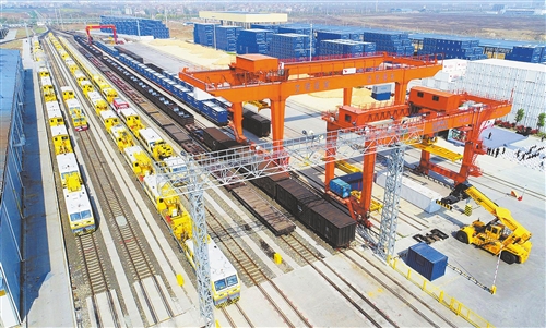 湖北襄陽自貿(mào)片區(qū)內(nèi)襄北編組站發(fā)出貨運(yùn)班列。 (資料圖片)