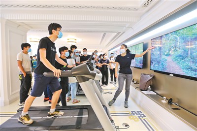 6月24日,華為上海南京東路旗艦店正式開業(yè)。該店一樓是產(chǎn)品體驗(yàn)區(qū),二樓為全場(chǎng)景體驗(yàn)區(qū),分為智能家居、移動(dòng)辦公、運(yùn)動(dòng)健康、智慧出行、影音娛樂等五大場(chǎng)景。該店還為消費(fèi)者提供全場(chǎng)景沉浸式互動(dòng)體驗(yàn)。圖為市民在該店內(nèi)體驗(yàn)智能運(yùn)動(dòng)產(chǎn)品。王 初攝(人民視覺)
