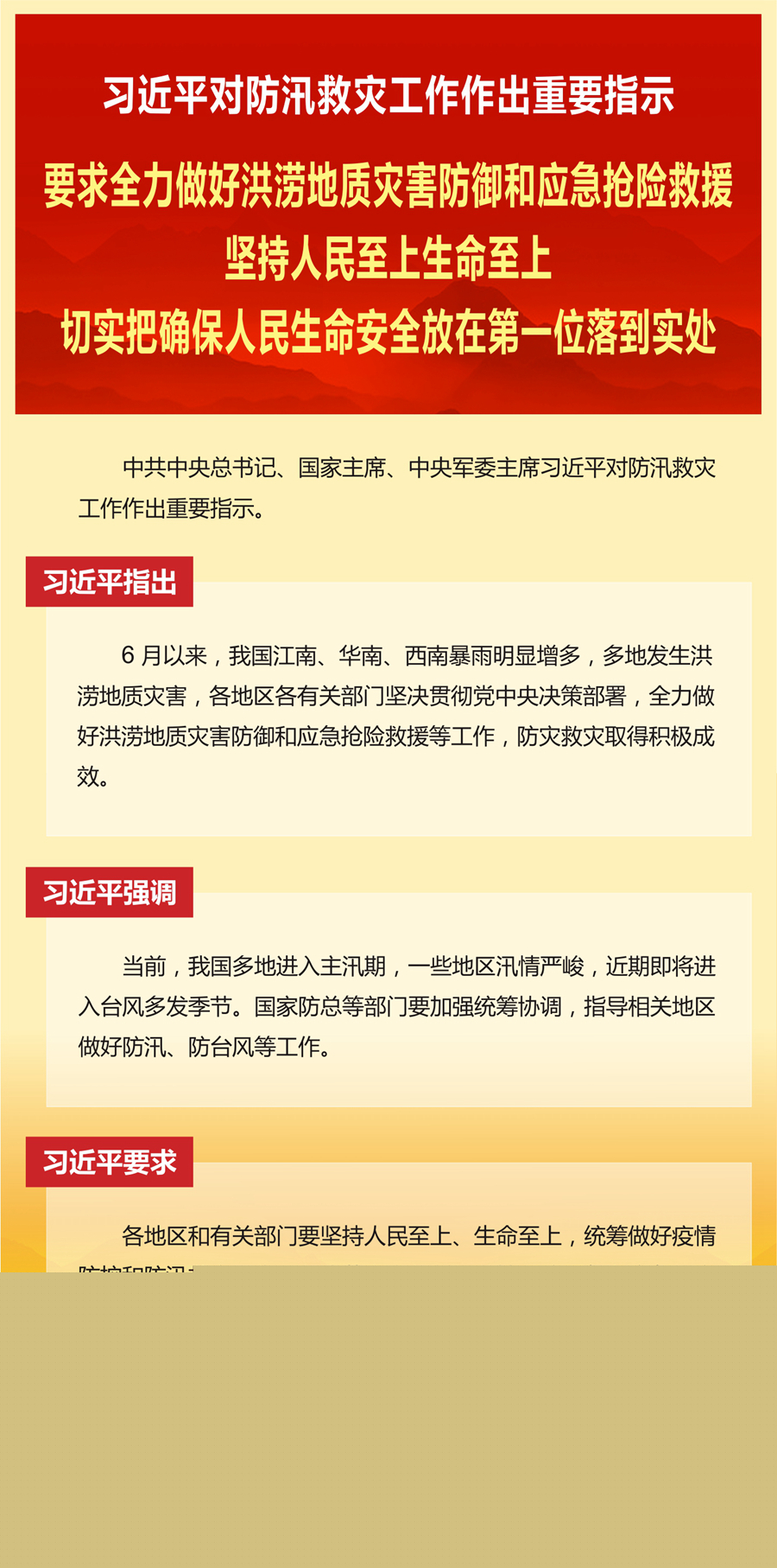 中共中央總書記、國家主席、中央軍委主席習近平對防汛救災工作作出重要指示。