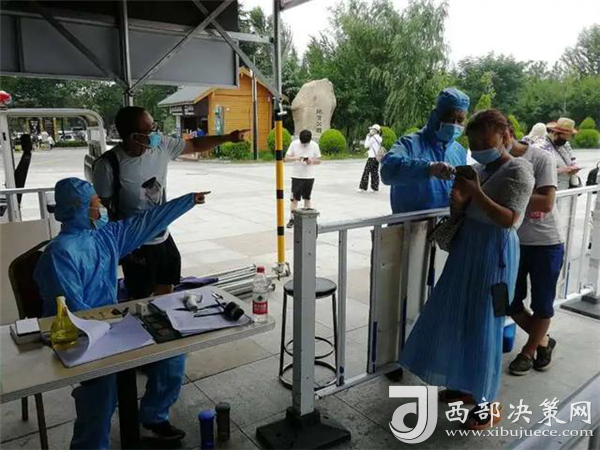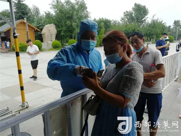 在游客入口處,工作人員正在逐一測(cè)量游客體溫、查驗(yàn)健康碼,沒(méi)有健康碼的,他們要幫助游客注冊(cè)并認(rèn)真登記。經(jīng)檢驗(yàn),一切正常的,恭請(qǐng)入園;體溫不正常的,進(jìn)一步篩查甄別;健康碼是黃色的,勸返;健康碼是紅色的,隔離。