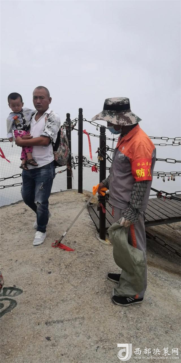 因?yàn)殚L(zhǎng)時(shí)間彎腰撿拾垃圾,楊群社的脊背被太陽(yáng)曬得火燒一樣疼,眼睛被光禿禿、白花花的華山花崗巖反射回來(lái)的太陽(yáng)光刺得發(fā)澀暈眩。脊背燒得難忍時(shí),楊群社就找一個(gè)有風(fēng)的方向吹一吹;頭暈得厲害時(shí),楊群社用手揉一揉太陽(yáng)穴、掐一掐鼻梁。
